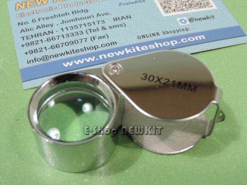 ذره بین لوپ با بزرگنمائی 30 برابر - تمام فلزی نقره ای با لنز شفاف